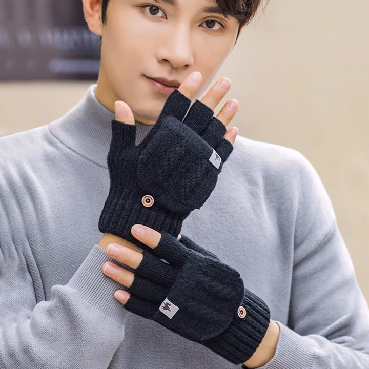 半指翻盖手套男士冬季保暖加厚漏指防寒触屏户外针织毛线手套