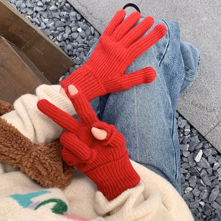 女士防寒触屏手套保暖冬季可爱学生针织毛线手套