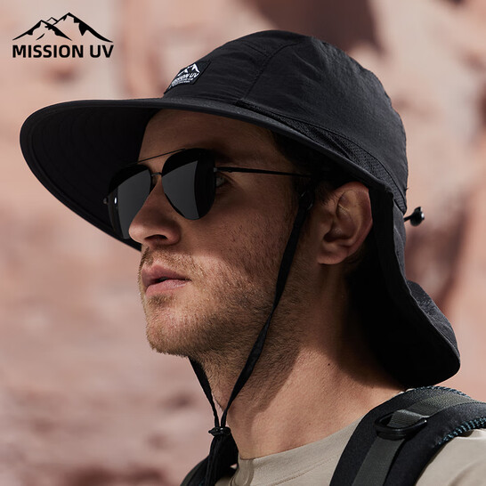 防晒帽男士遮阳帽太阳帽渔夫帽登山帽钓鱼帽凉帽夏季户外遮脸防紫外线帽子男 MU130 黑色